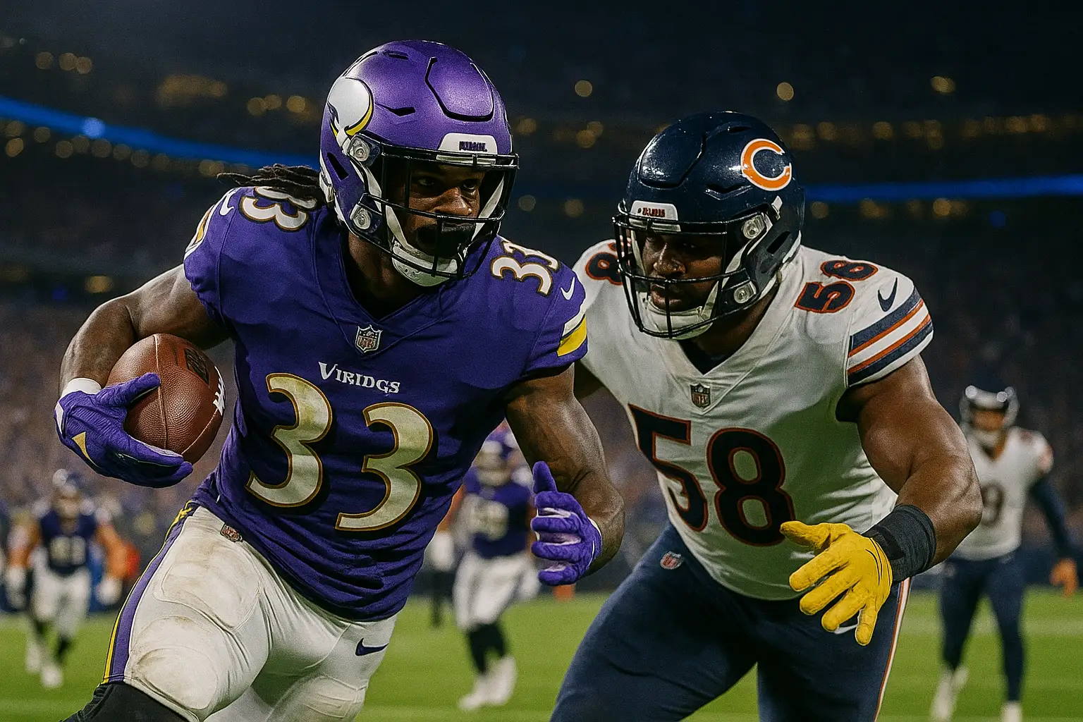 The Minnesota Vikings head to Soldier Field for a prime-time NFC North clash with the Chicago Bears on Monday Night Football, September 8, 2025.